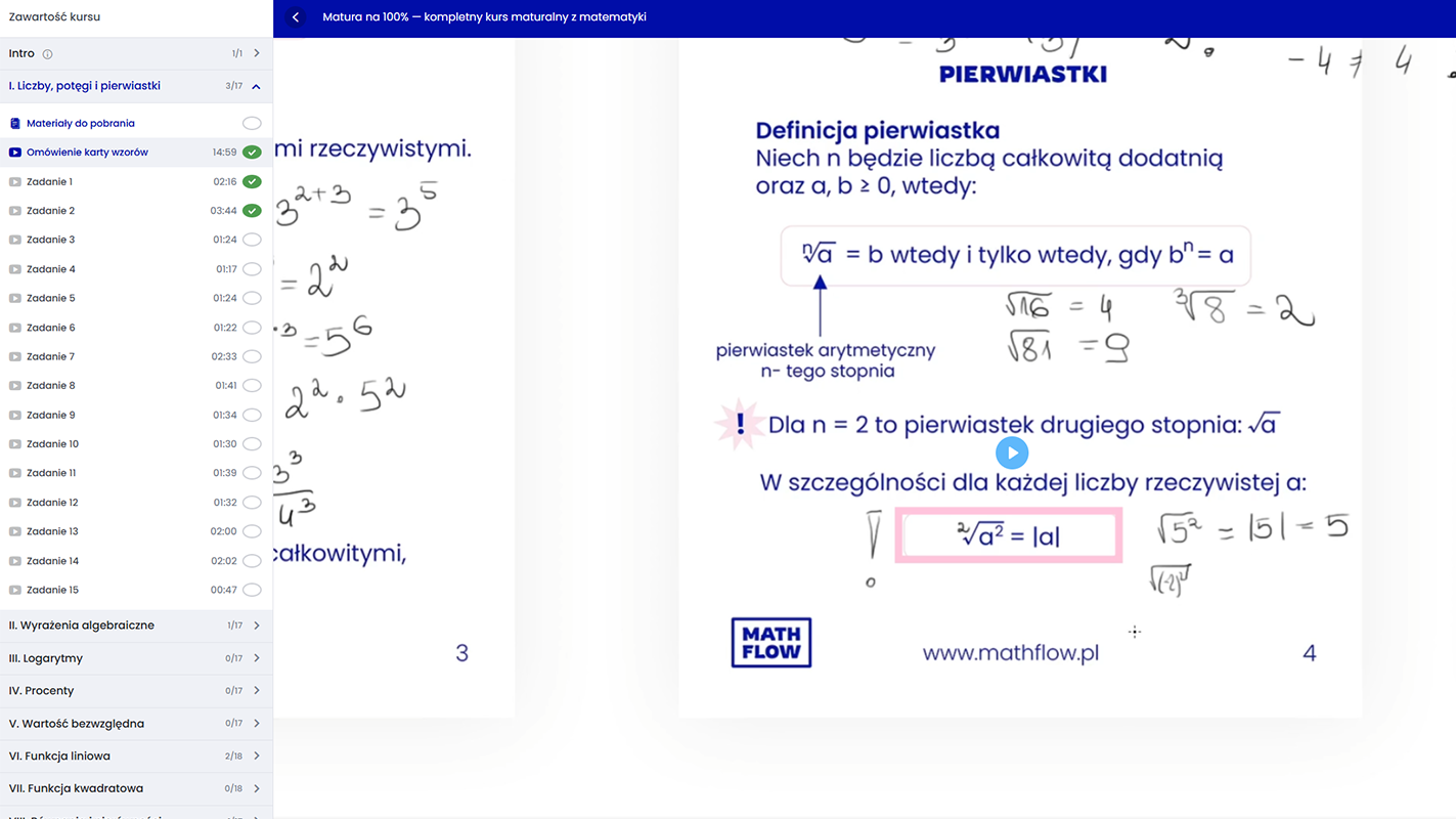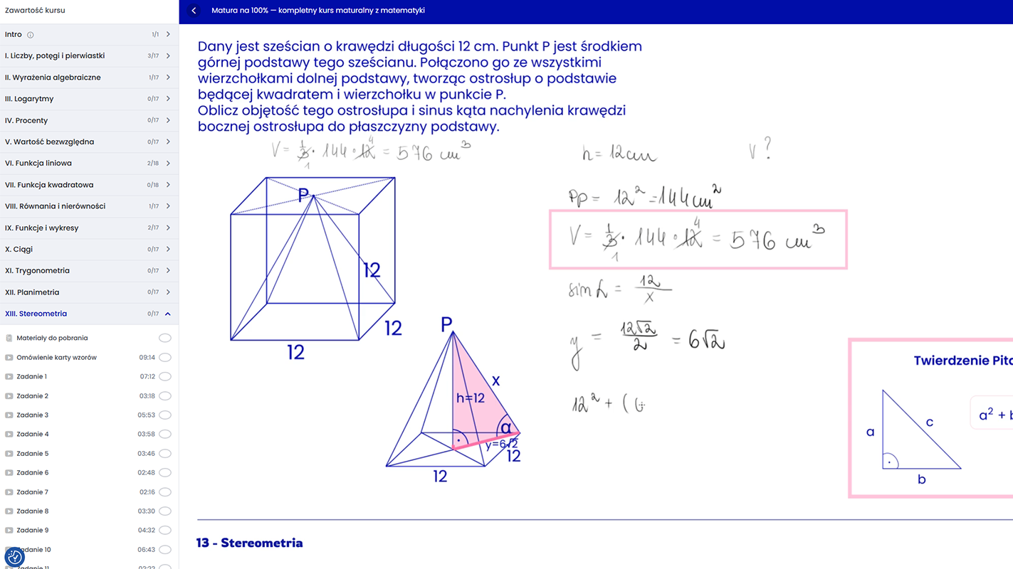 Tak. Kurs został przygotowany z myślą o uczniach, którzy chcą zrozumieć matematykę krok po kroku od podstawowych zagadnień do tych bardziej złożonych tak, by każdy uczeń był w stanie przygotować się do matury