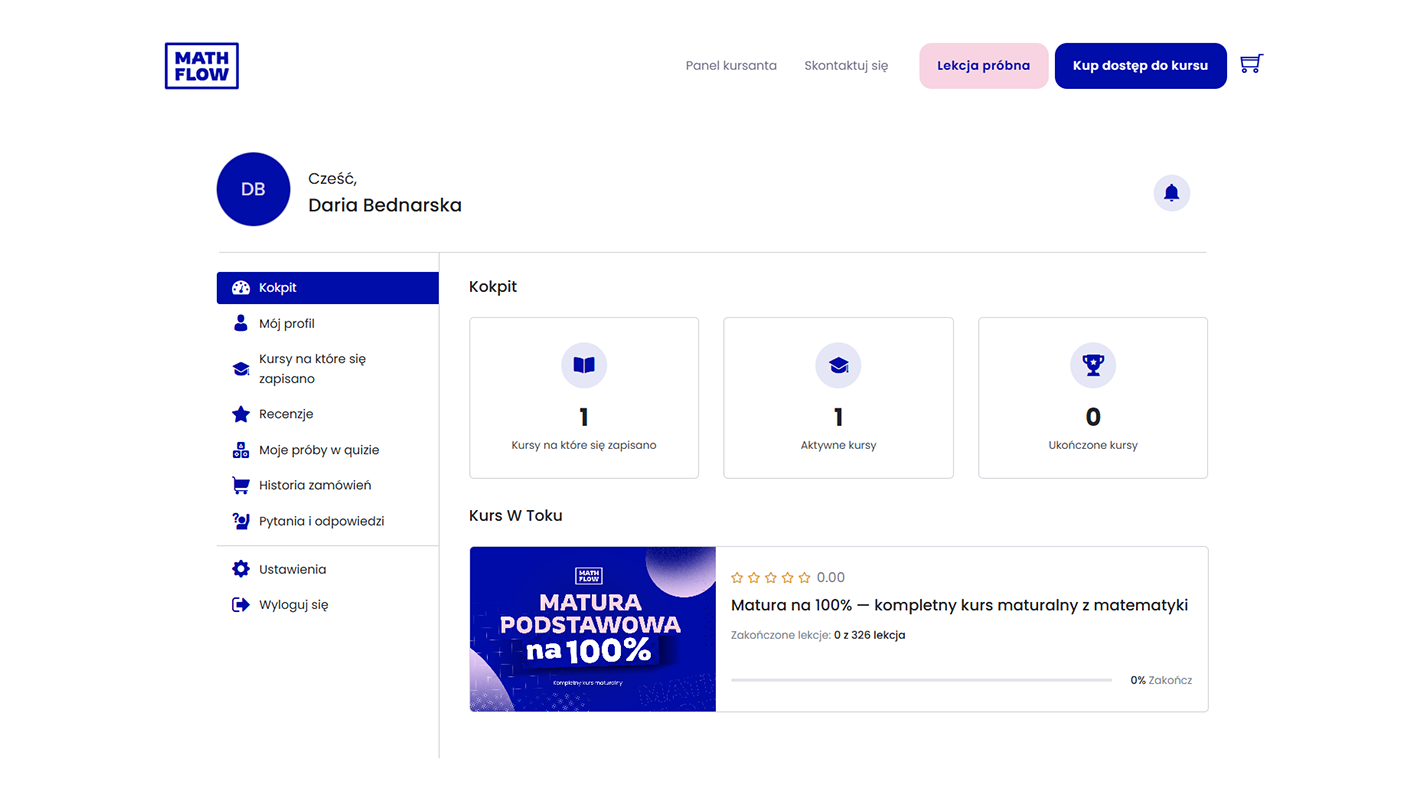 Materiał jest podzielony na działy, dzięki czemu możesz uczyć się we własnym tempie i wracać do lekcji wtedy, kiedy potrzebujesz.